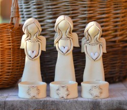 Ručně modelovaný keramický anděl na čajovou svíčku